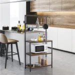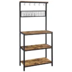 استاند مطبخ أنيق مصنوع من الفولاذ المطلي بالكهرباء الساكنة باللون الأسود مع علاقات ورفوف MDF بنية. هذا التصميم الحديث مثالي لمطبخك المعاصر. استمتع بقوة ومتانة البناء عالي الجودة مع زيادة التخزين والراحة.