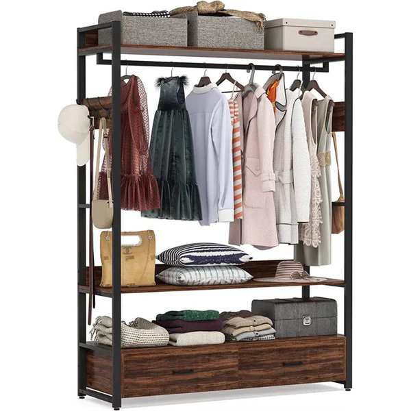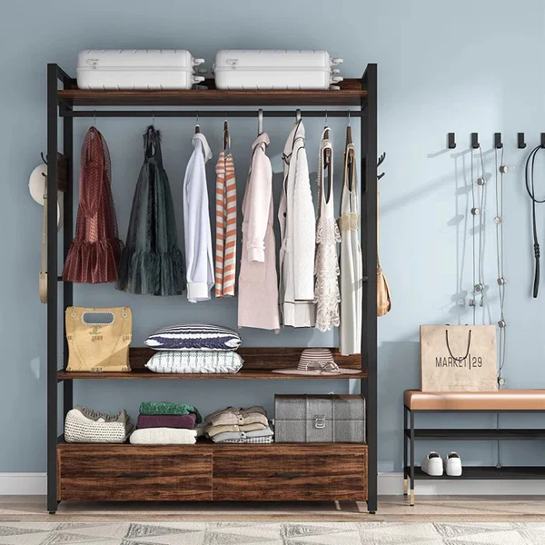 توفر هذه الخزانة الفولاذية الأنيقة المطلية باللون الأسود الكهروستاتيكي درجين لتحقيق أقصى قدر من إمكانات التخزين بالإضافة إلى تصميم فريد مع شماعة ملابس ولمسات بنية من خشب MDF لإضافة لمسة عصرية إلى غرفة نومك.