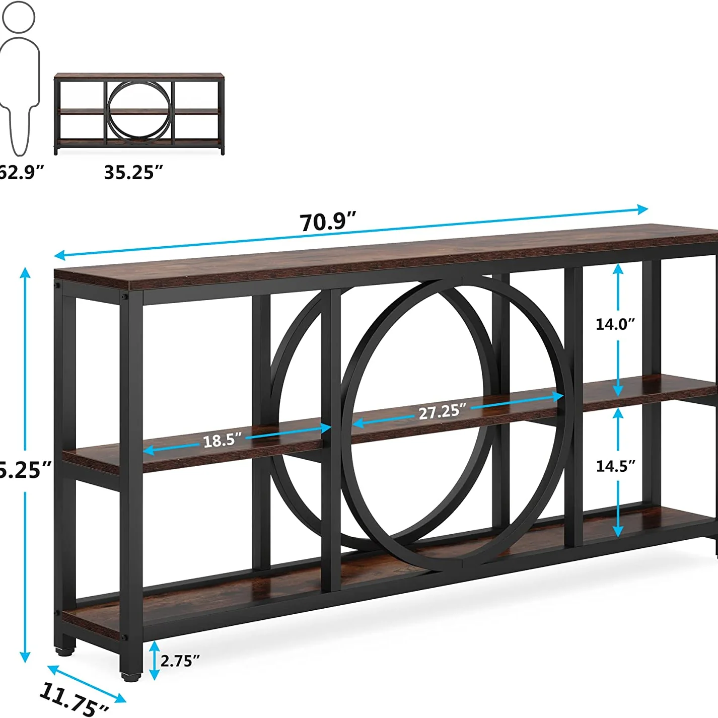 - 【طاولة كونسول متعددة الأغراض】 طاولة أريكة طويلة بتصميم مدمج من ترايب ساينز مثالية للمدخل والصالة والبهو وخلف الأريكة وغرفة المعيشة. رفوف تخزين مفتوحة مكونة من 3 طبقات بتصميم أنيق وعملي يناسب احتياجاتك المختلفة بشكل كبير.