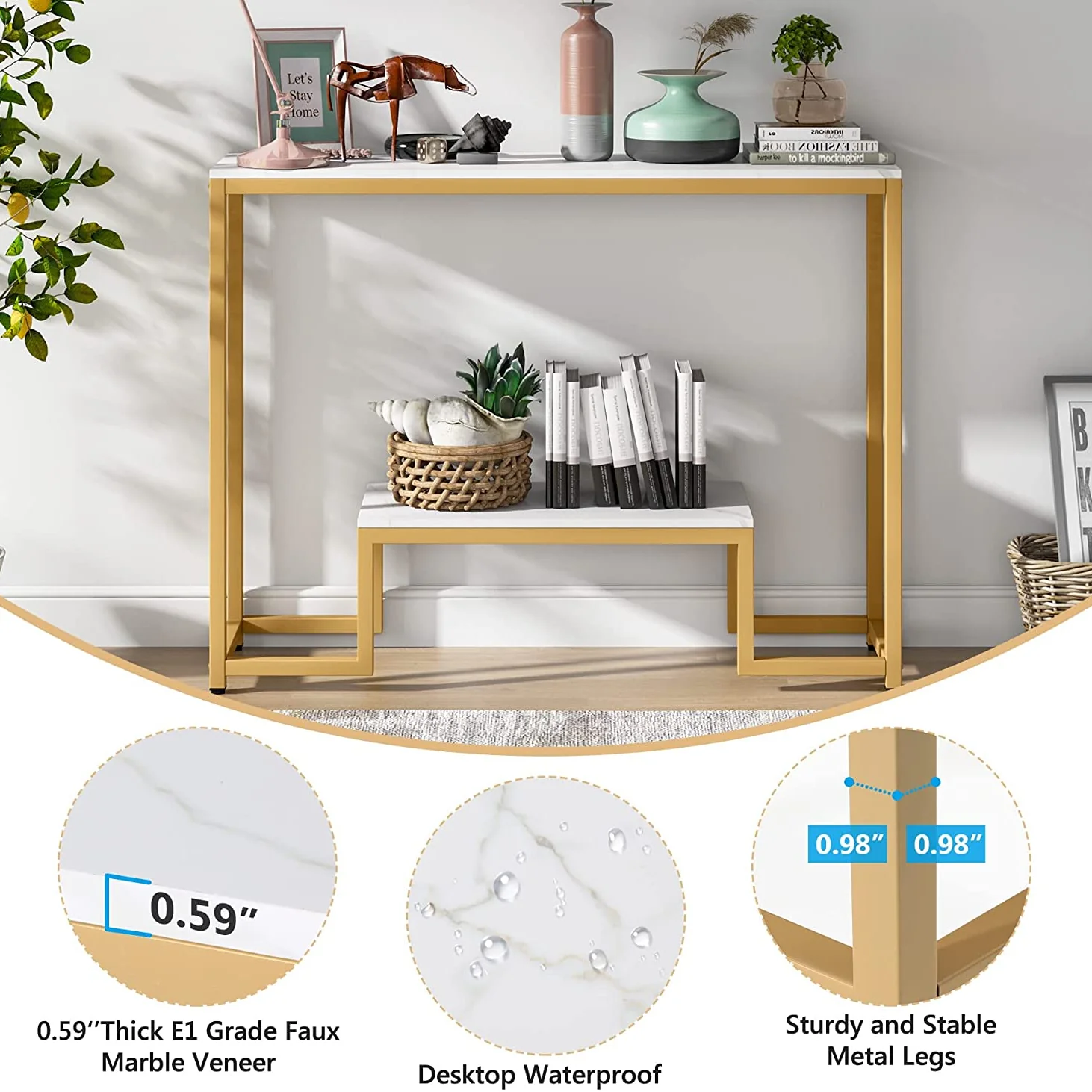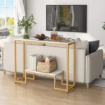 تم تصنيع الكونسول من مواد عالية الجودة، مما يعزّز من متانته ويدعم الاستخدام اليومي. زجاجه الذهبي يعكس الضوء بطريقة رائعة، مما يجعل كل غرفتك تبدو أكثر إشراقًا.