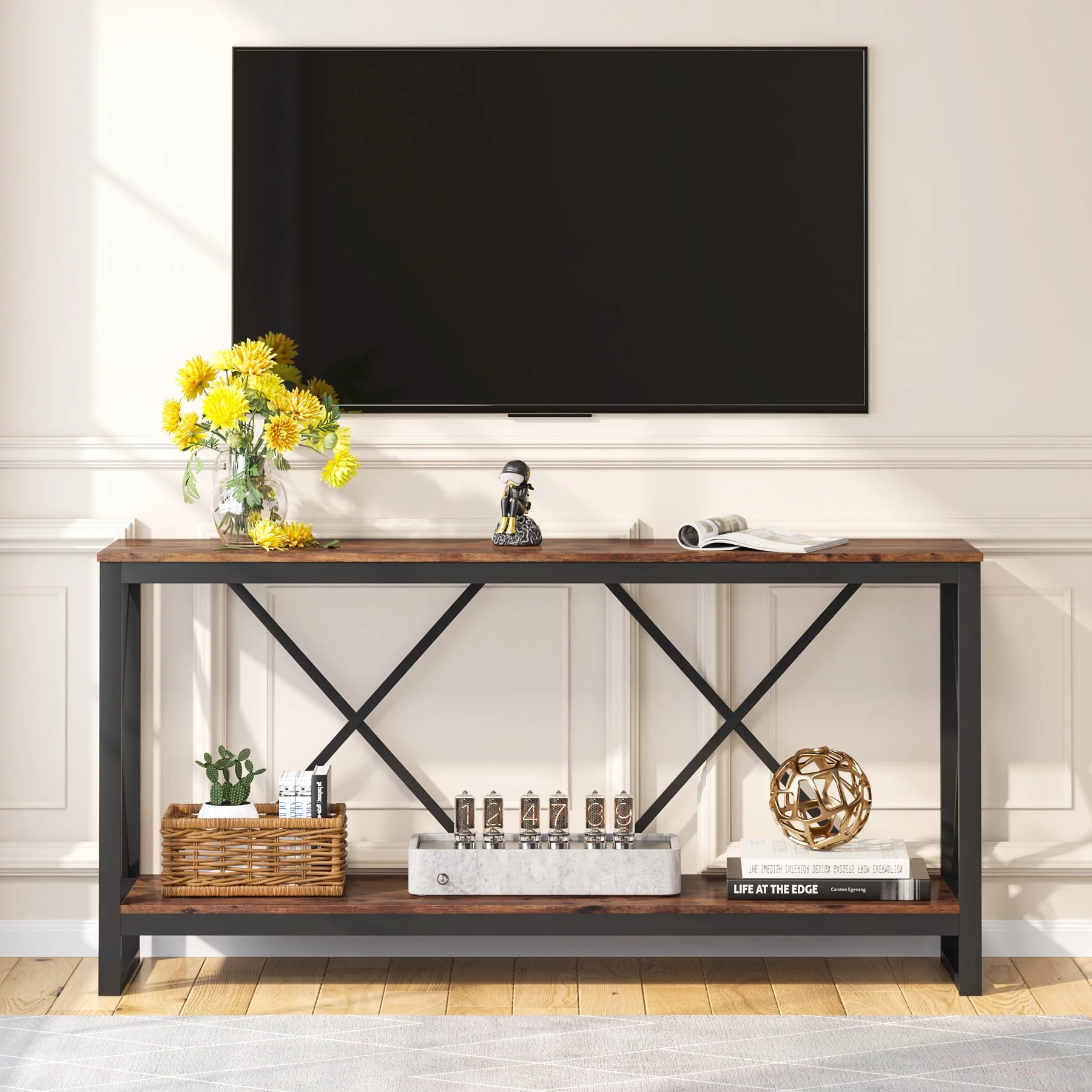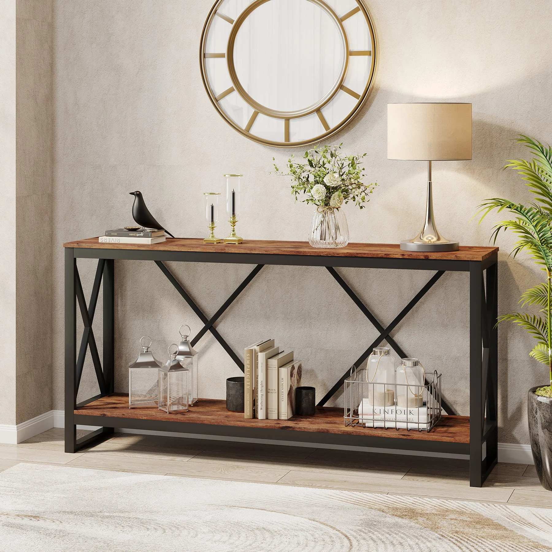 - طاولة كونسول طويلة للغاية 70.9 انش: مع طولها 71 انش، تجمع طاولة الكونسول العصرية هذه بين دفء درجات الخشب والخطوط النظيفة، مما يضفي الأناقة والريف. توفر الأرفف المفتوحة مساحة واسعة لتخزين الكتب والنباتات والديكورات والصور وأكثر من ذلك، مما يجعلها مثالية لأنماط الديكور المختلفة وأي غرفة في منزلك.