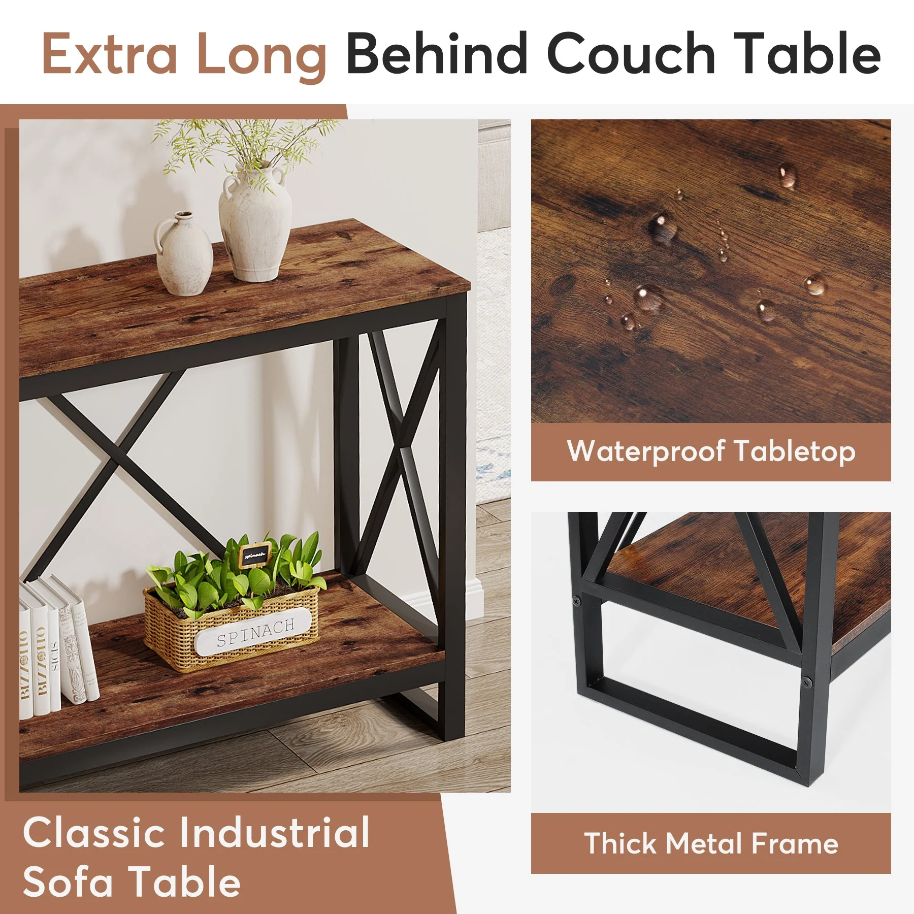 - هيكل متين: مصنوعة من لوح سميك وإطار أنبوب معدني عالي الجودة مع دعامة خلفية وجانبية مزدوجة على شكل حرف X، طاولة الأريكة هذه متينة ولن تتمايل عند الوقوف على الأرض. لوحة لطيفة على البشرة من جميع الجوانب تجعلها مقاومة للخدش والرطوبة وسهلة التنظيف. يضمن الإطار الستيل السميك أن يدوم لفترة أطول.