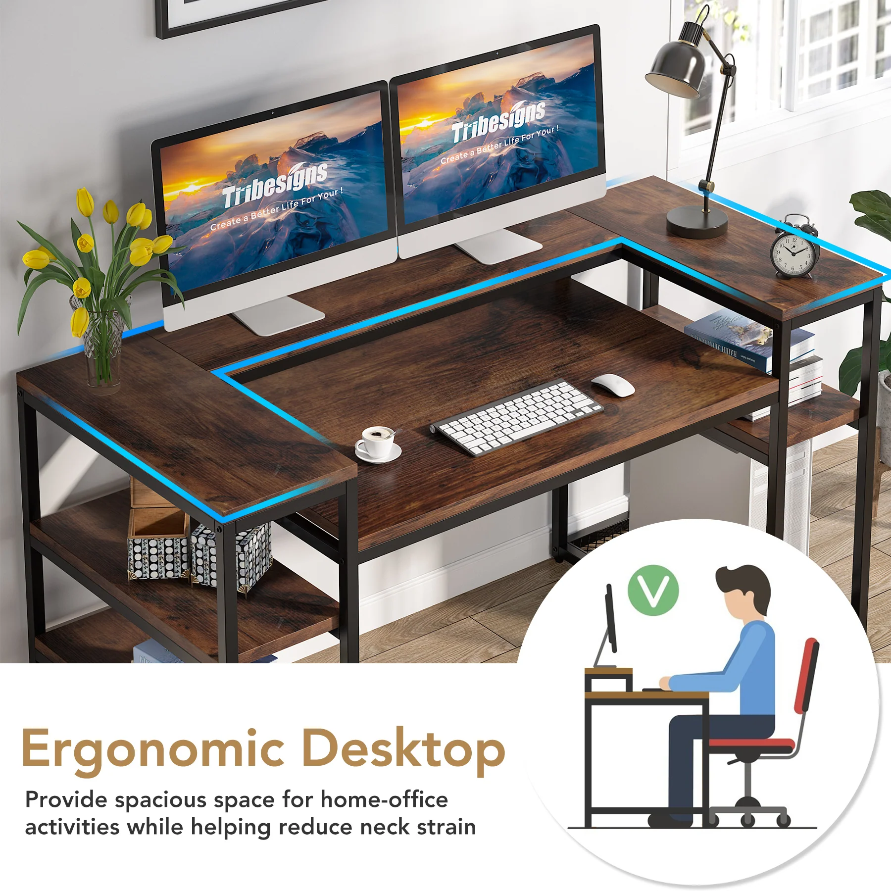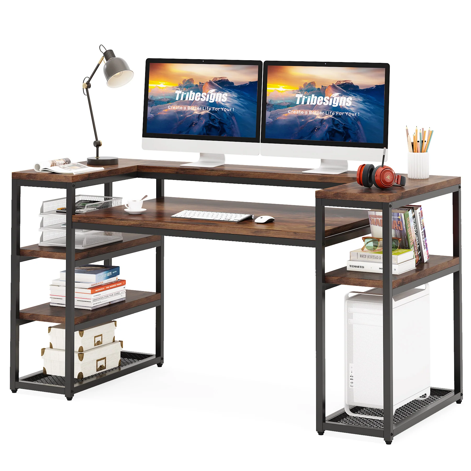 - قم بإنشاء مساحة عمل ملهمة: سطح المكتب 160انش × 60انش هذا كبير بما يكفي ليناسب شاشتي كمبيوتر ولوحة مفاتيح وغيرها من اللوازم المكتبية. كل ما تحتاجه للعمل الإنتاجي أو الدراسة قريب من متناول اليد مع أرفف تخزين جانبية.