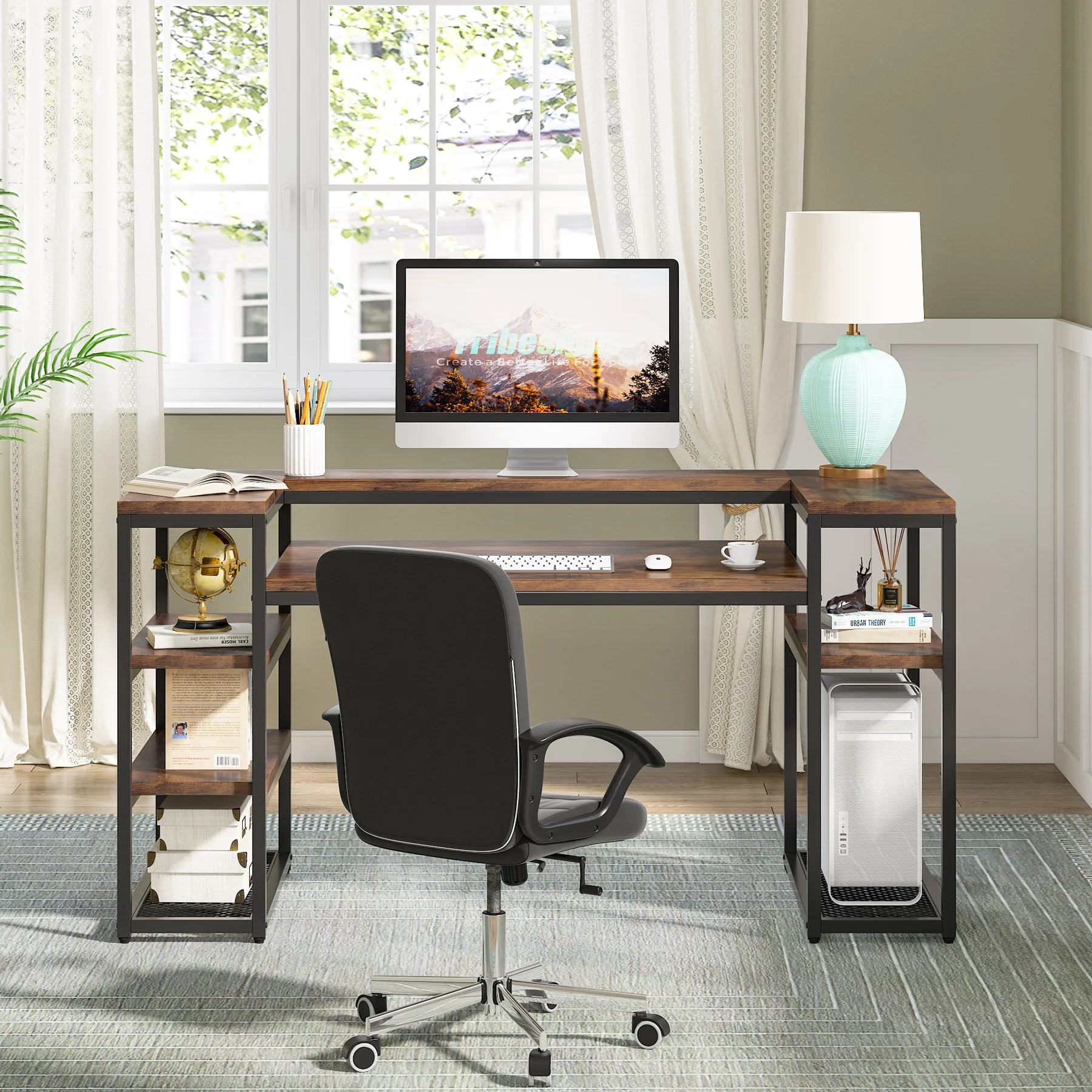 مكتب كمبيوتر منزلي على الطراز الصناعي (140× 60 × 75سم) مع 3 أرفف تخزين