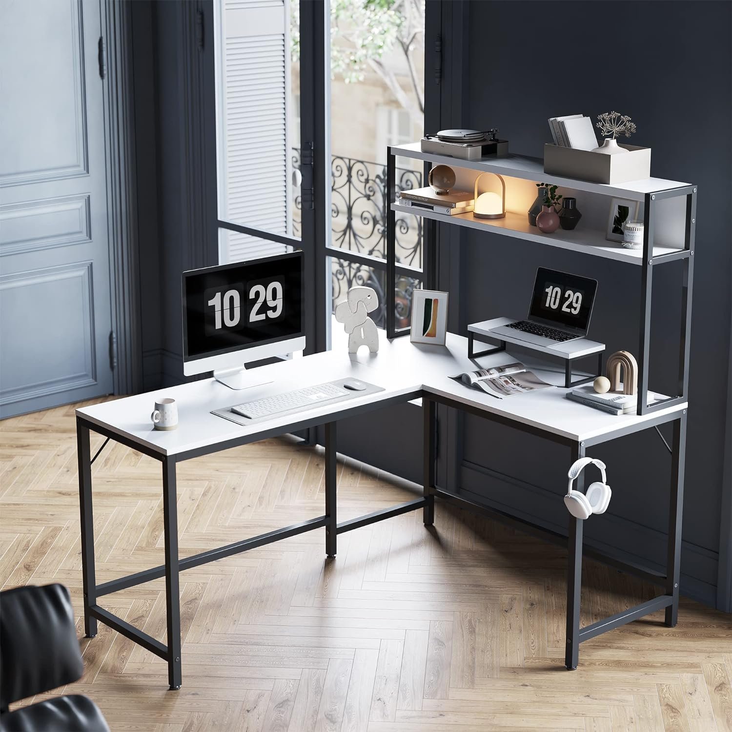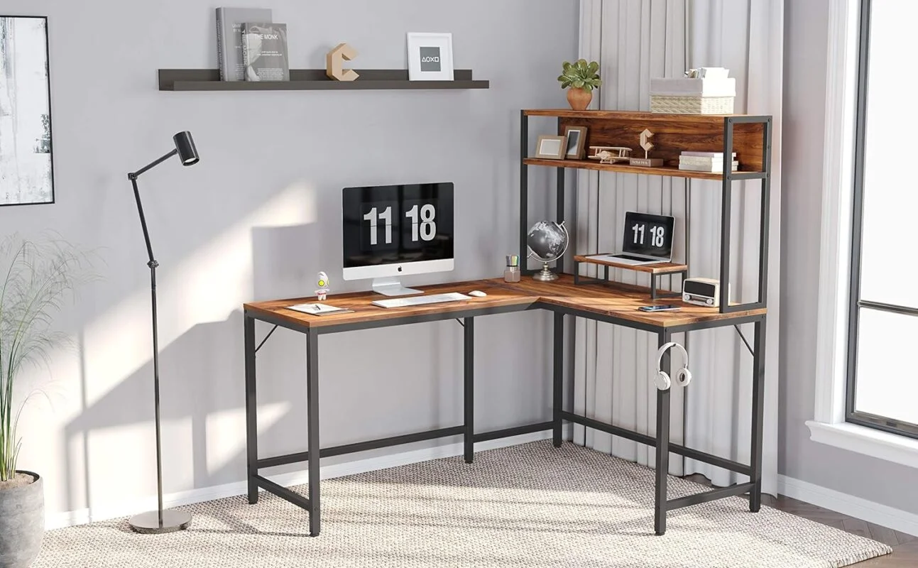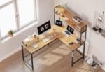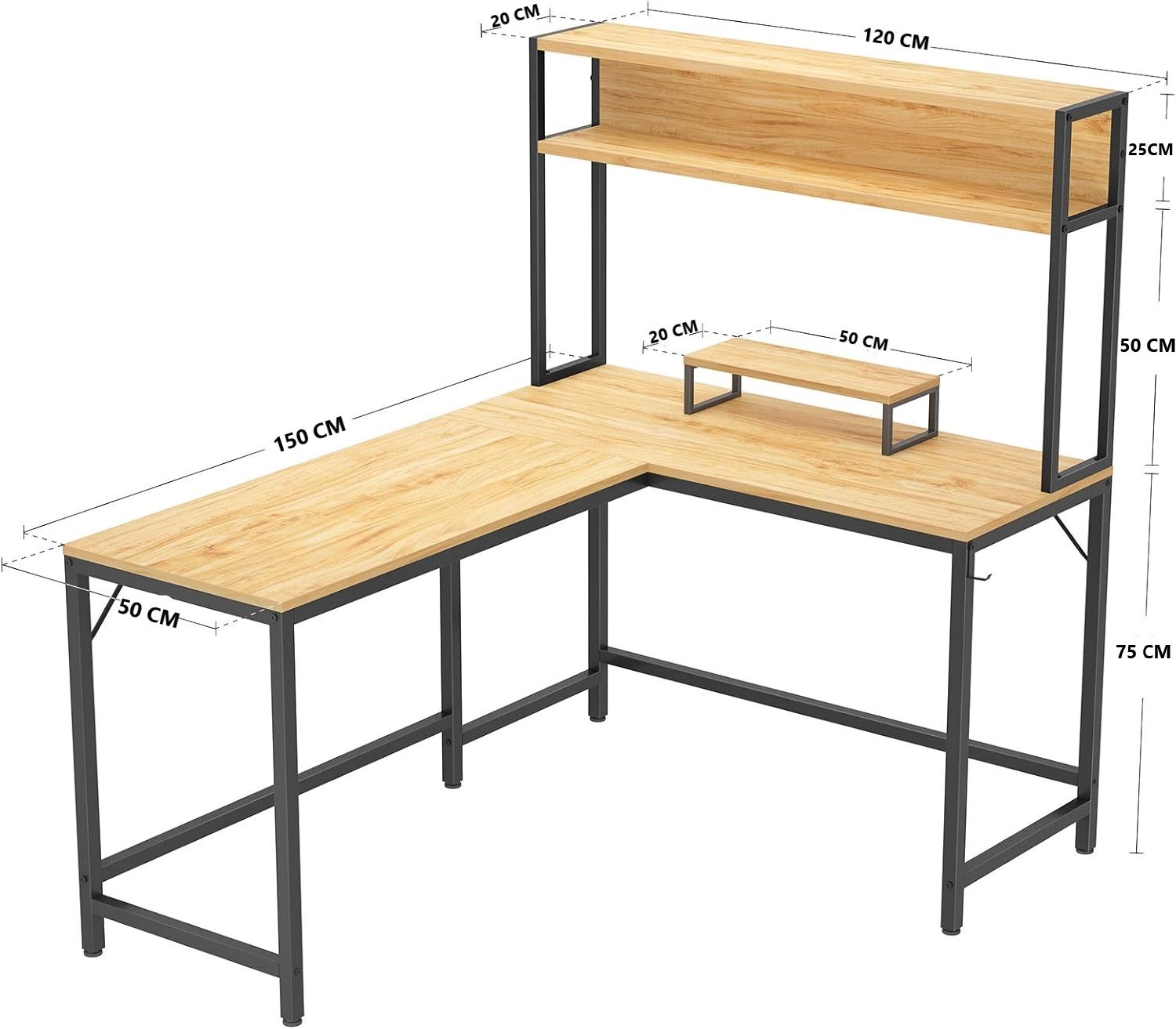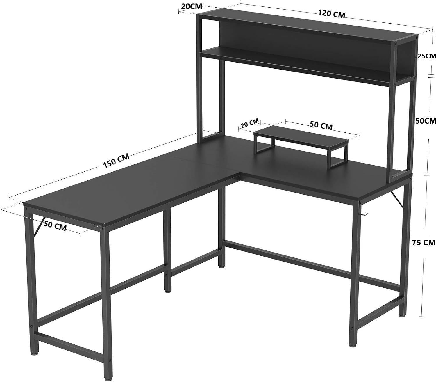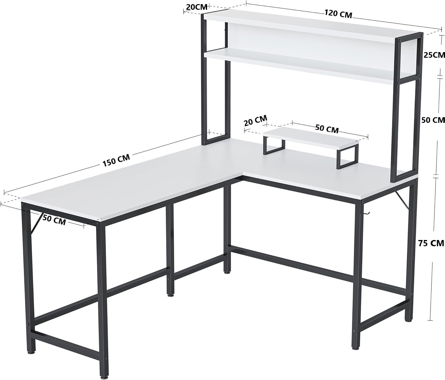 مكتب كمبيوتر للزاوية على شكل حرف L مع رفوف تخزين للكتب، مناسب للمنزل والمكتب والألعاب والعمل مقاس 1.4 متر