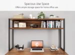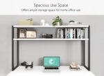 مكتب كمبيوتر مزدوج كبير طويل للغاية مع ارفف تخزين للكتابة والدراسة لشخصين