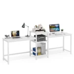 مكتب كمبيوتر مزدوج كبير طويل للغاية مع ارفف تخزين للكتابة والدراسة لشخصين