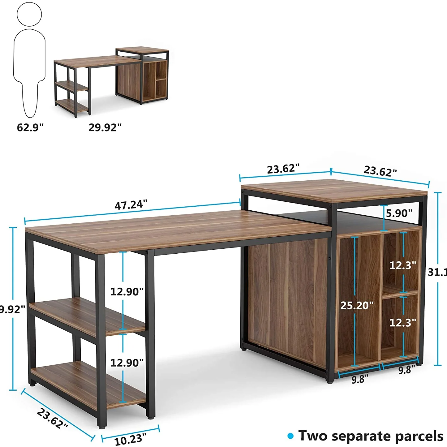 مكتب كمبيوتر مقاس 47 بوصة مع رف تخزين – مكتب منزلي مع حامل طابعة وخزانة كتب وطاولة كمبيوتر للكتابة – تصميم موفر للمساحة