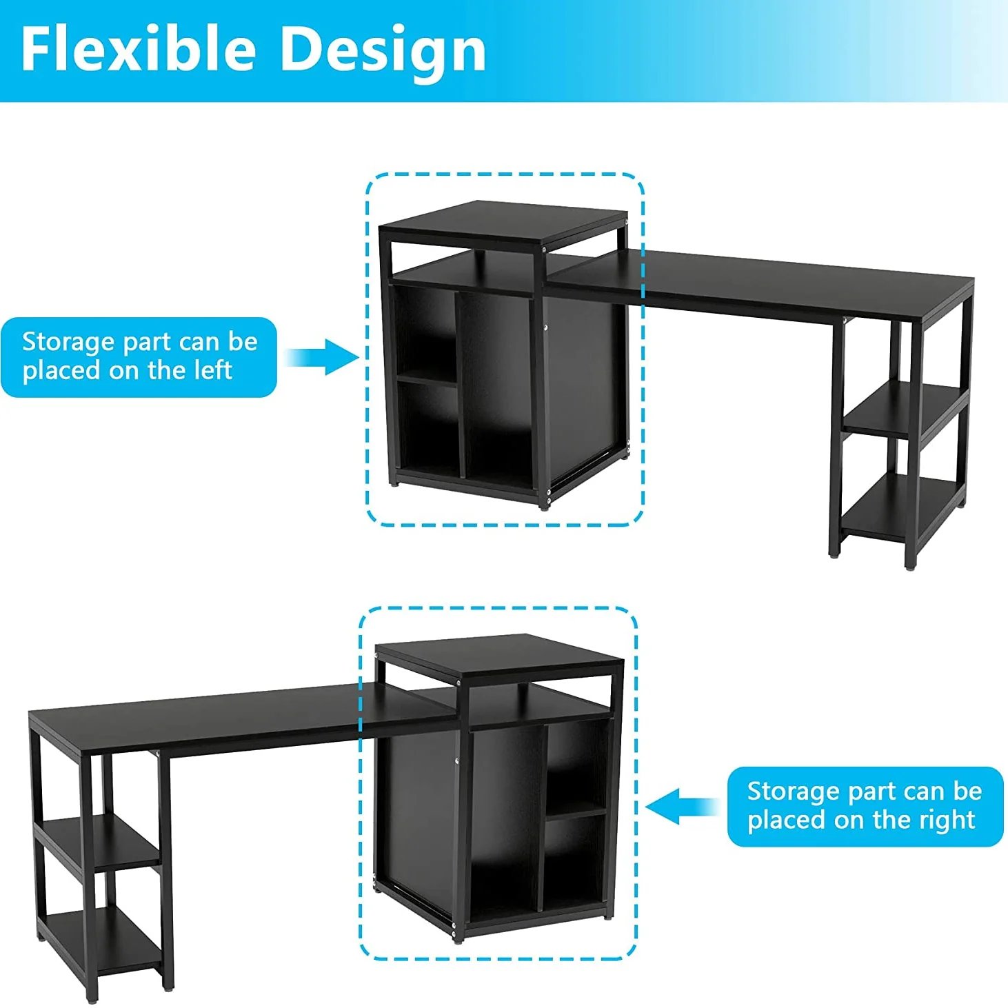 مكتب على شكل حرف L مع سطح مرفوع، مكتب قائم قابل للتعديل مقاس 65 بوصة مع درج ملفات، مكتب كمبيوتر زاوية مع أرفف تخزين، مكتب منزلي، أسود