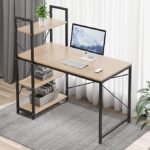 مكتب مع أرفف من 4 طبقات – سطح المكتب مقاس 90 سم × 60 سم واسع بما يكفي لمساحة العمل أو الكتابة. يمكن وضع 4 أرفف مفتوحة على اليسار أو اليمين حسب تفضيلاتك مع توفير مساحة إضافية لللوازم المكتبية الأخرى.