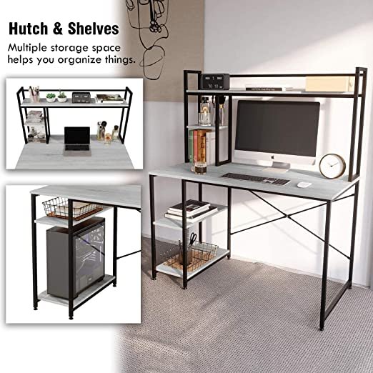 مساحة تخزين كبيرة؟ تصميم أرفف مفتوحة فوق سطح العمل توفر مساحات للكتب واللوازم المكتبية ؛ الحفاظ على كل شيء في متناول اليد. 120 * 60 سم سطح المكتب هو الخيار المثالي للمساحة الصغيرة التي يمكن أن تستوعب الكمبيوتر المحمول أو 2 مراقبة. ملفات لوحة المفاتيح وملحقات المكتب.