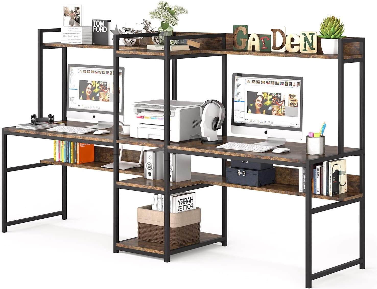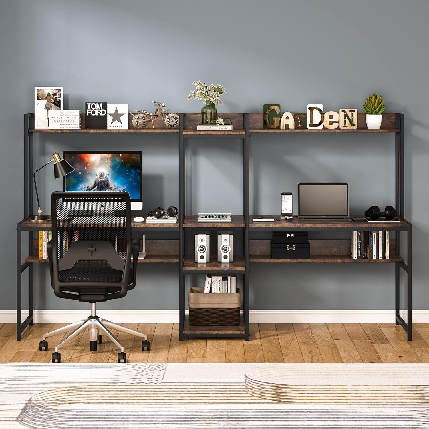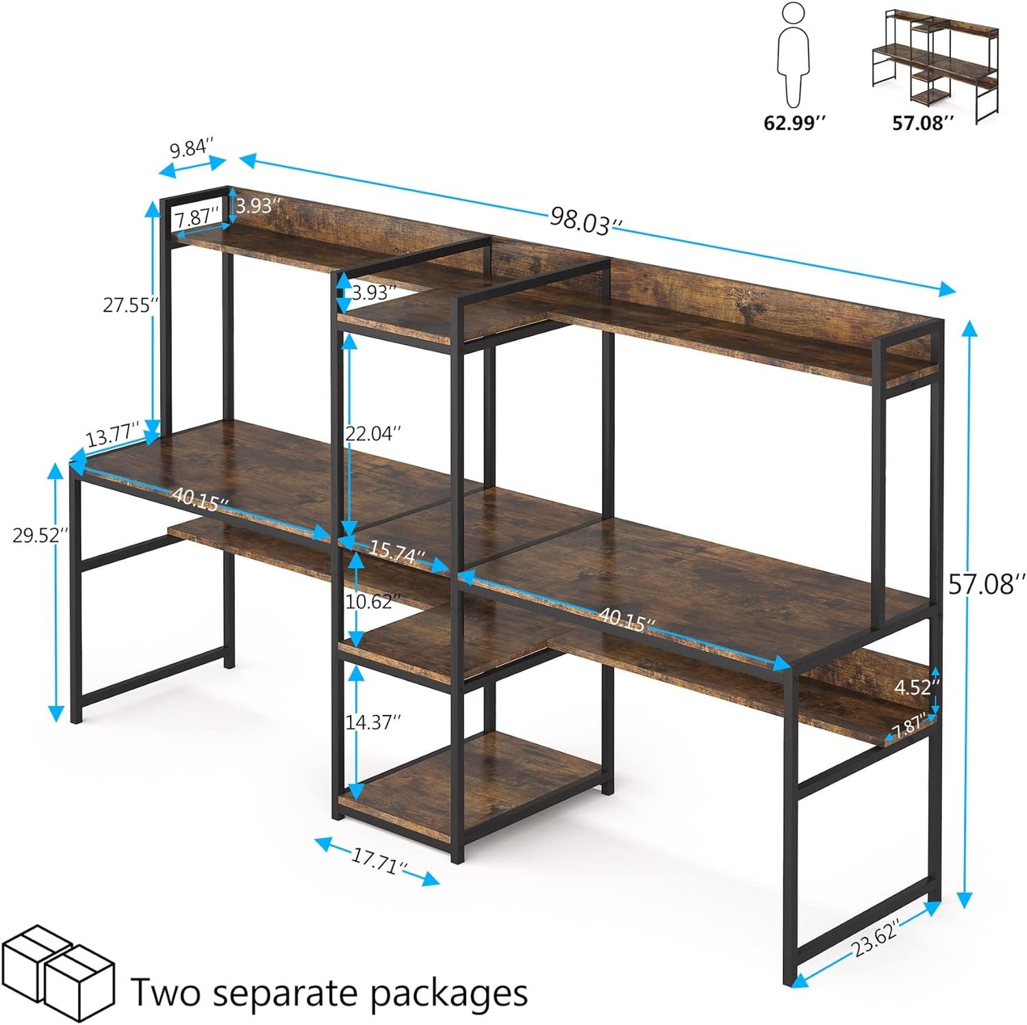 مكتب مزدوج، مكتب لشخصين، كمبيوتر بطول 98 بوصة مع مساحة تخزين وقفص، مكتب دراسة كبير جدًا لشخصين للمكتب المنزلي