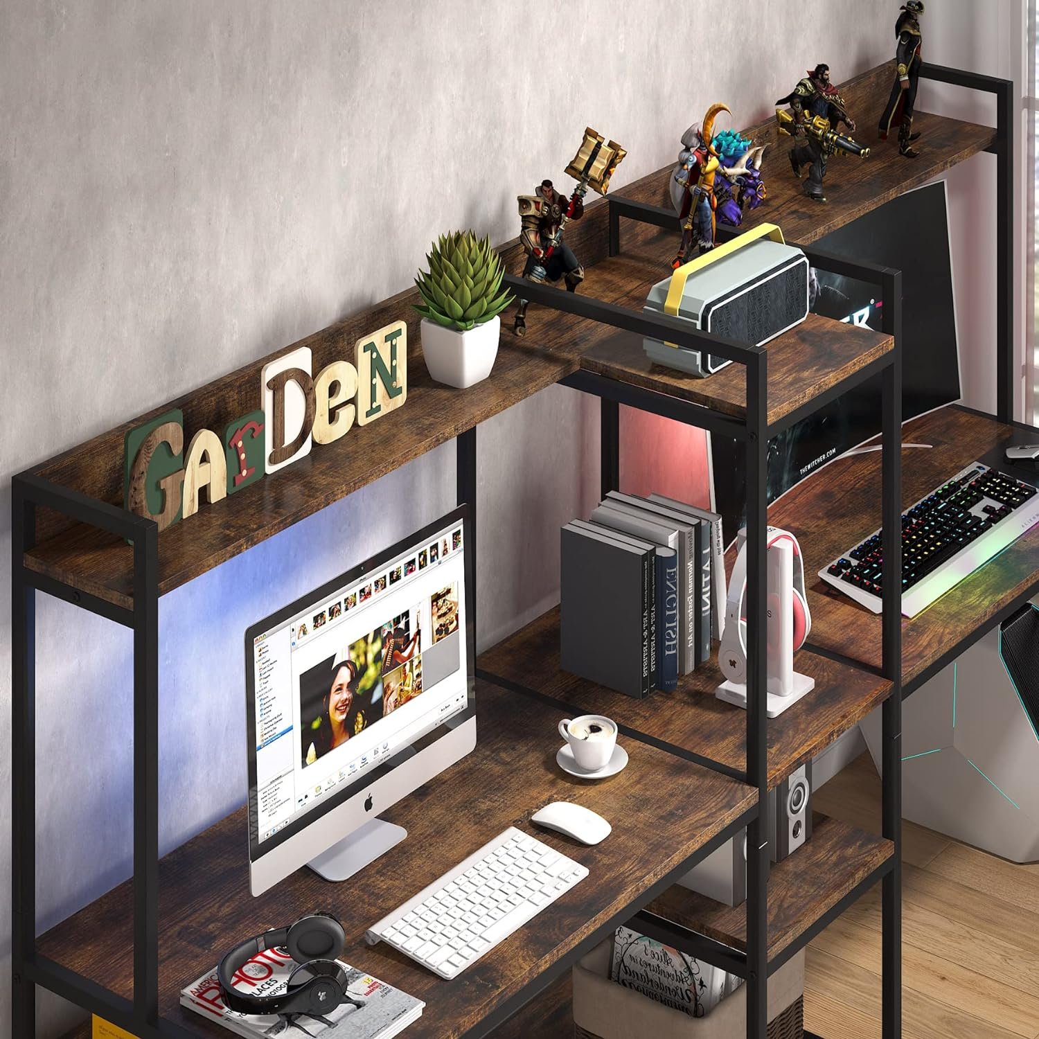 ✅[مساحة تخزين كبيرة] رفين في الجزء العلوي ورفين للكتب أسفل سطح المكتب لتخزين الكتب أو المستندات أو لعرض العناصر الزخرفية. جعل كل ما تحتاجه في متناول الجميع. بالإضافة إلى ذلك، يوجد رف كبير في المنتصف لطابعتك أو لوازم المكتب الأخرى